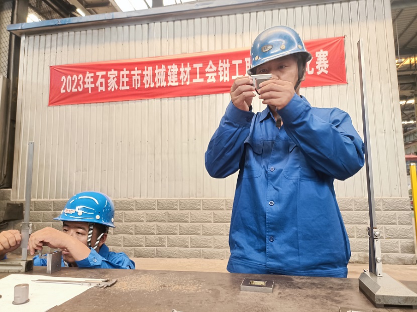 6月15日上午,2023年石家莊市機械建材工會鉗工職業(yè)技能比賽在河冶科技2#廠房鉗工維修區(qū)開賽。